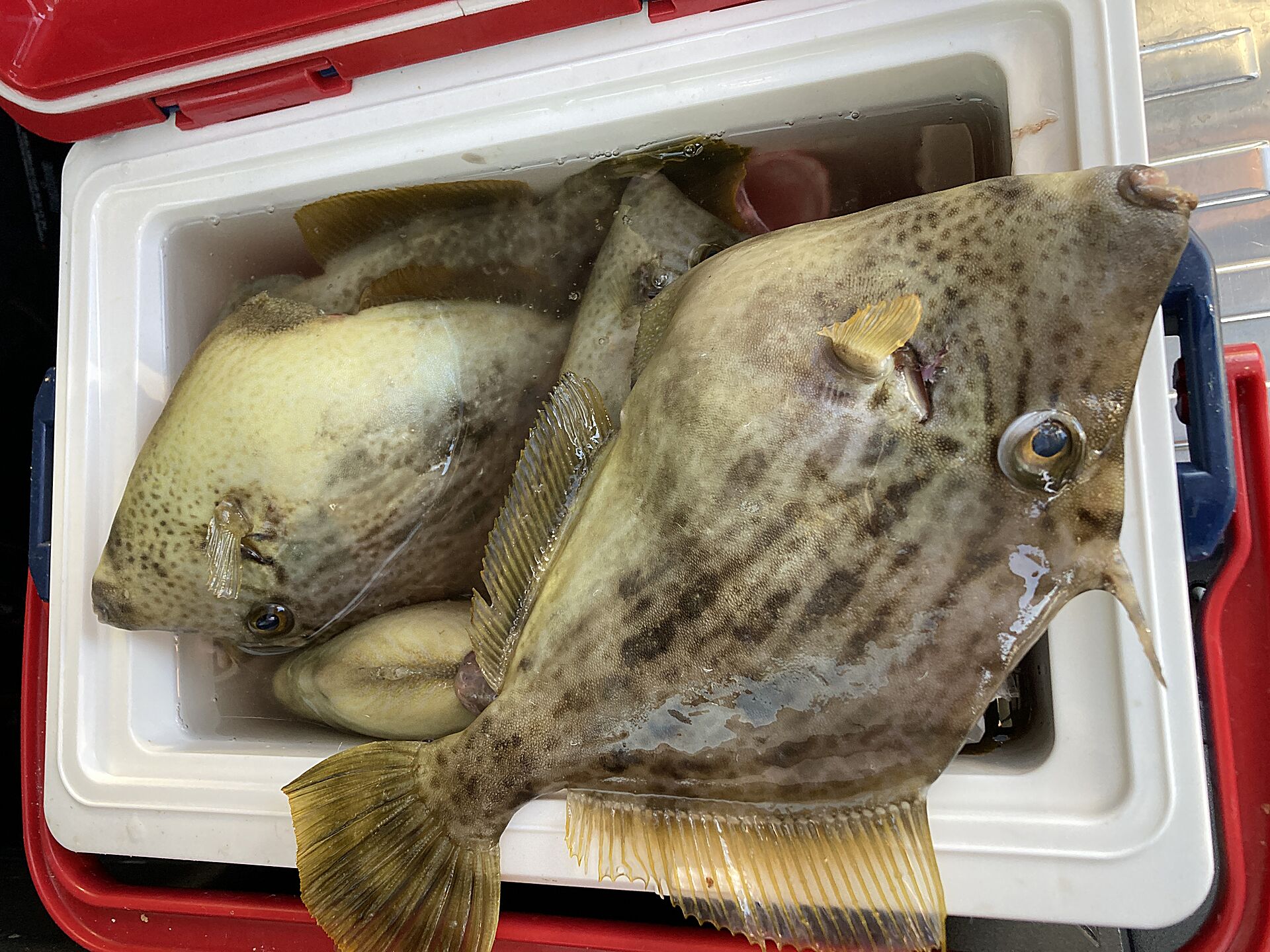 帰港、ほとんどのクーラー氷が解けて魚が半煮えみたい?